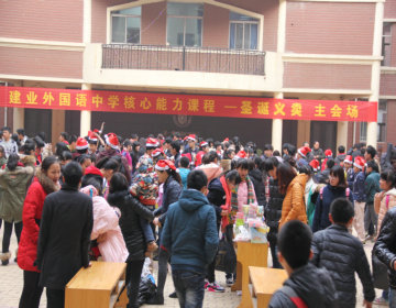 12月21日下午,深冬的郑州,寒风瑟瑟,河南建业外国语中学的校园内却是一番热火朝天的景象,由学务部组织的2013年校园“圣诞义卖”活动在这里如期举行。